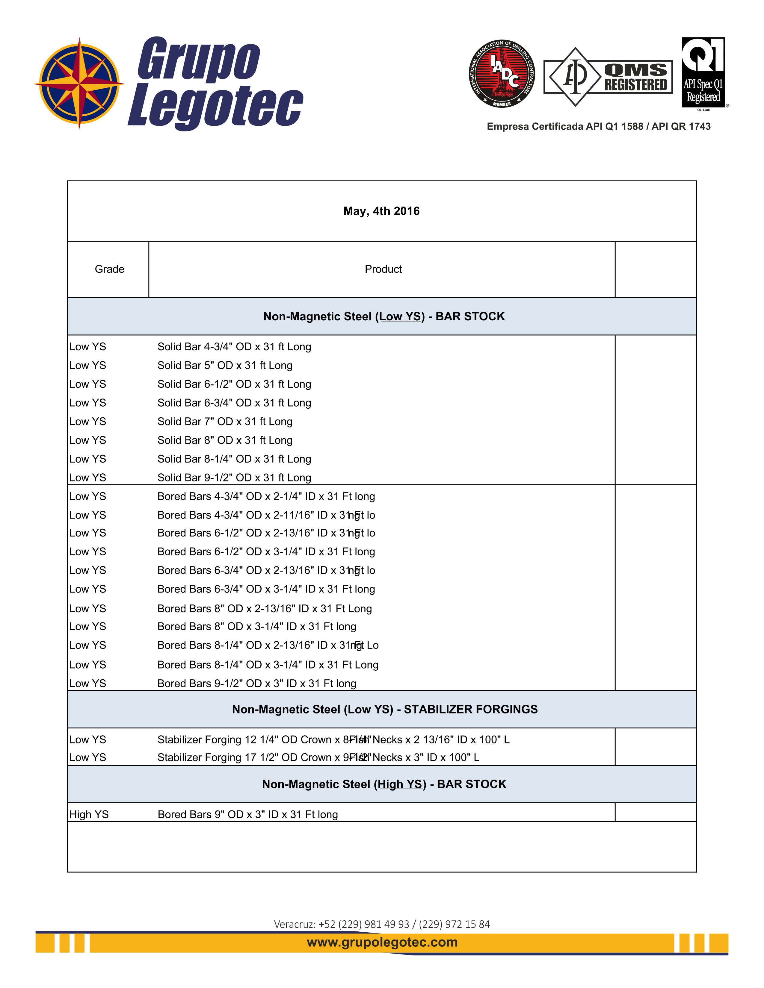 4145H Mod Solid bar 3-1/2" OD x 31ft Leer más